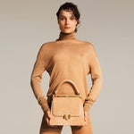 Ledertasche im Stil einer Aktentasche, handgefertigt in Italien. Die kleine Schwester unserer Marlene Tasche verleiht jedem Outfit das gewisse Etwas und ist der Liebling aller Influencer. Die zeitlose Silhouette der Tasche ist zu jeder Jahreszeit ein unverzichtbarer Begleiter. Das minimalistische Design mit goldfarbenen Details bietet im Inneren ausreichend Platz, sodass Deine Wertsachen und ein Mini-Tablet sicher verstaut sind. Marlene kann in der Armbeuge oder mit dem beiliegenden verstellbaren und gepolsterten Schultergurt getragen werden.