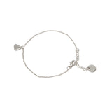 Zierliches glattgebürstetes Armband mit Herzanhänger und Maison Hēroïne Charm am Verschluss. Größenverstellbar aus silberbeschichtetem Stainless Steel gefertigt, lässt es sich perfekt mit unserer Aurelia Heart Kette kombinieren.